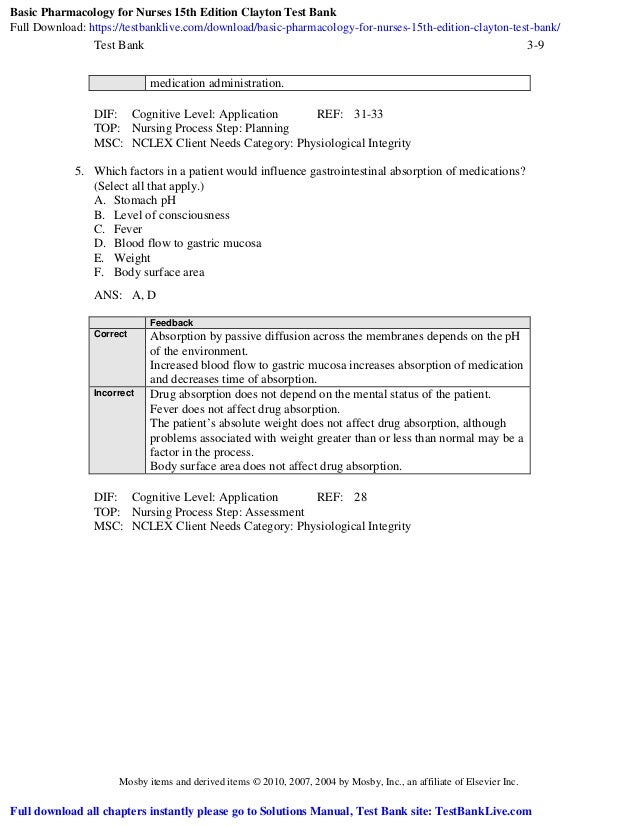 The nursing process and pharmacology(free). When auscultating lung sounds, the nurse notes inspiratory and expiratory wheezing bilaterally. With a clear explanation of drug prototypes and how they work, lehne's pharmacology for nursing care, 10th edition gives you the background you need to understand drugs currently on the market, and those not yet released. Test bank for basic statistics for business and economics, 8th edition: Nursing test banks is the first steps to success.
