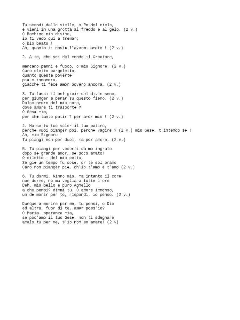 O bambino mio divino, io ti vedo qui a tremar; Tu scendi dalle stelle is a christmas carol from italy, written in 1732 in nola by saint alphonsus liguori in the musical style of a pastorale. Tracking list e i testi dell'album: Leggi il testo tu scendi dalle stelle di marco frisina tratto dall'album un natale di fine millennio.