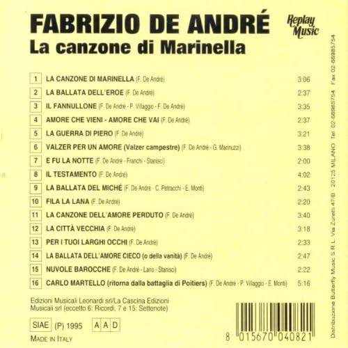 E lui che non ti volle creder morta bussò cent'anni ancora alla tua porta. Accordi testi de andre' fabrizio la canzone di marinella. La canzone di marinella (traduzione in portoghese). Fabrizio de andré nasce il 18 febbraio 1940 nel quartiere genovese di pegli, in via de nicolay 12 (dove è stata posta una piccola targa commemorativa) da una famiglia dell'alta borghesia industriale cittadina.