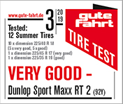 Dunlop Sport Maxx Rt 2 225 45 R17 Test. Tested against 4 direct premium competitors in september 2015 by tüv süd automotive (report no. *compared to the average of the premium competitors in the test. 225/55r17 on vw passat alltrack and ford kuga and 255/45r18 on audi a7.