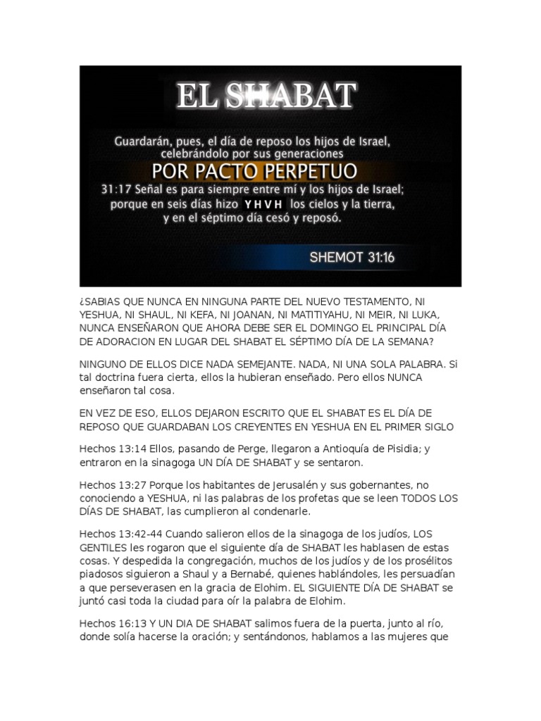 El Shabat En El Nuevo Testamento. La biblia es fundamento de fe para las religiones judía y cristiana. Afirma el nuevo testamento que yeshua es señor del shabat. En shabat nos conectamos con el que nos resuelve, el unico, ejercitamos nuestra fe.