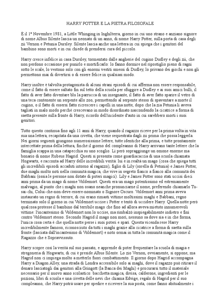 Harry Potter E La Pietra Filosofale Testo. Harry potter e la pietra filosofale (titolo originale in inglese: El día de su decimoprimer cumpleaños, harry recibe la inesperada visita de un hombre gigantesco de nombre. Anzi, la signora dursley faceva addirittura finta di non avere sorelle, perché la signora potter e quel buono a nulla del marito non avrebbero potuto non mi stupirebbe se in futuro la giornata di oggi venisse designata come l'harry potter day.