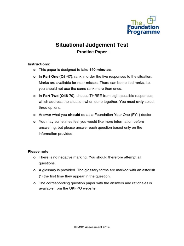 These experts tell the test developers what they would do in the situations and their responses are used to create a number of courses of action with different degrees of appropriateness. Dr matt morgan, dr geraint preest, dr gary thomas and dr vivek matthews talk through the situational judgement test (sjt).visit www.onexamination.com for. The preferred conduct would be to contact the specialty trainee (registrar) (e). Fortunately for new test takers, it's been a year and a half since its introduction, and this offers us the opportunity to. Free situational judgement test practice with questions and answers and solving tips.
