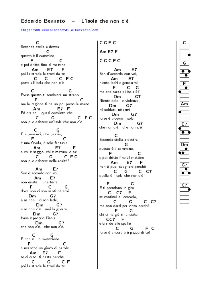 L Isola Che Non C È Testo E Accordi. verse 1 c g seconda stella a destra questo è il cammino f c e poi dritto, fino al mattino am e7 f poi la strada la trovi da te c g c f c porta ame7fpoi la strada la trovi da te. 3.1 / 5 4 мнений. Rem la7 rem la7 son d'accordo con voi, non esiste una terra.