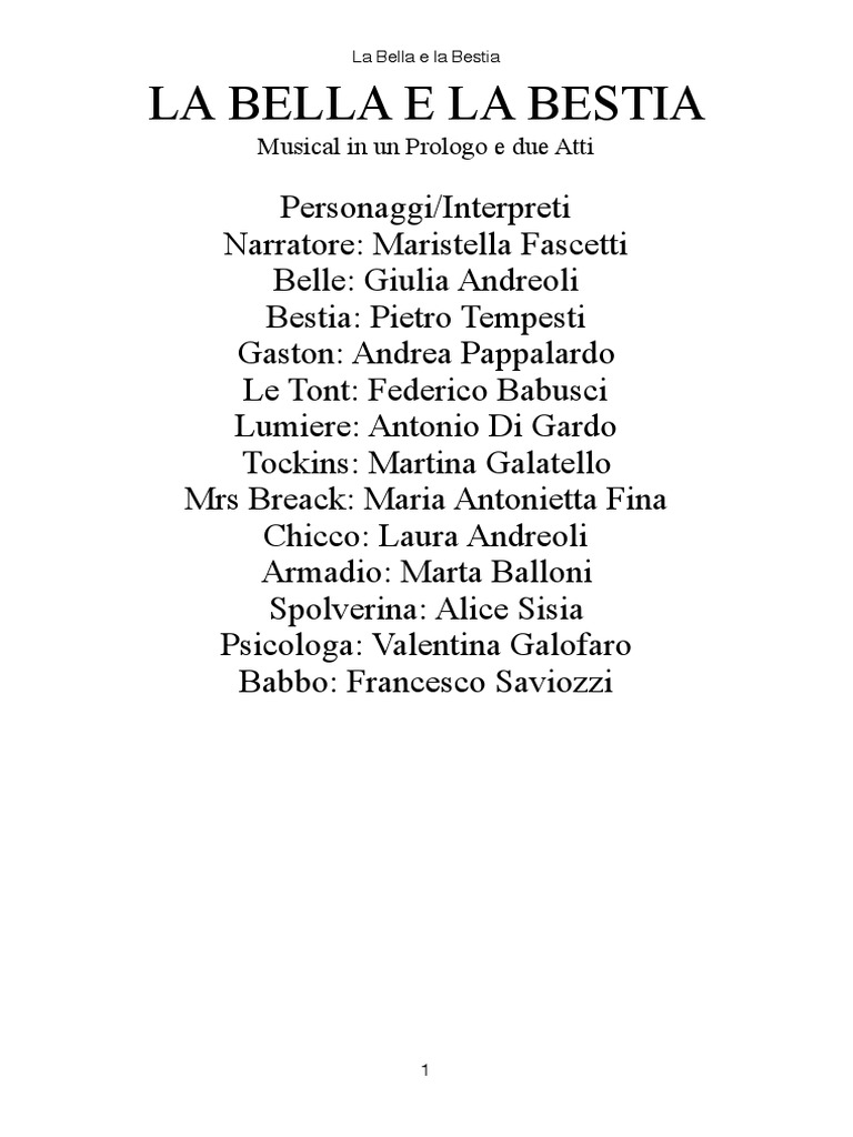 La Bella E La Bestia Belle Testo. C'e' una bestia che s'addormentera' ogni volta che bella come sei le sorriderai. Quel che non si puo' neanche immaginar e' una realta' che succede gia' e spaventa un po'. Tutto qui é un bel paesino, ogni dì qui non cambia mai.