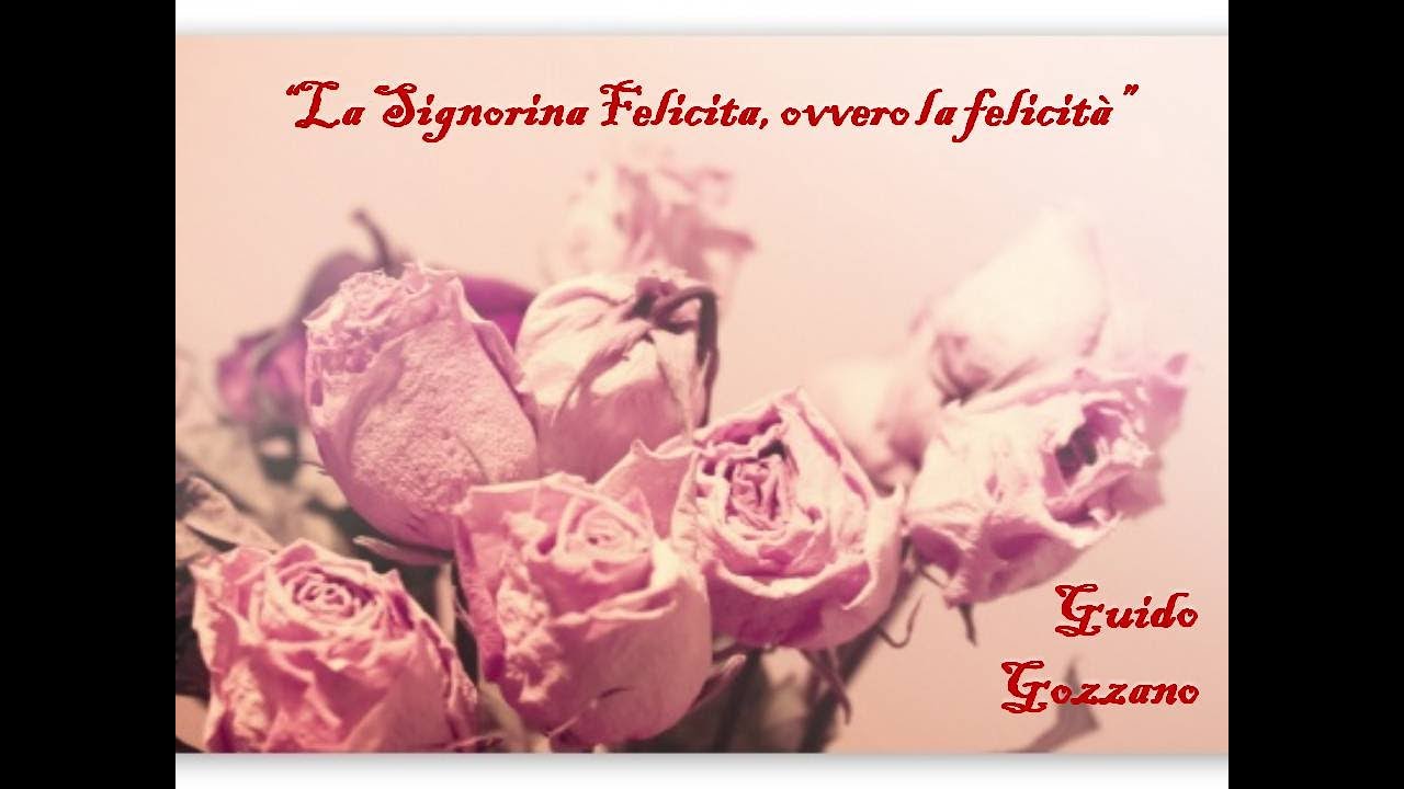 La Signorina Felicita Ovvero La Felicità Testo. 6e quel dolce paese che non dico. Signorina felicita, a quest'ora scende la sera nel giardino antico. La signorina felicita ovvero la felicità è una novella in versi che prende a soggetto la vacanza in un innominato paesino del canavese di un avvocato raffinato, colto e letterato, cui accade di definirsi un «esteta gelido» (v.