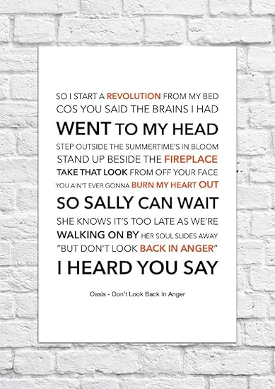 Watch the video for don't look back in anger from oasis's (what's the story) morning glory? So sally can wait, she knows its too late as we're walking on by her soul slides away, but don't look back in anger i heard you say. Oasis (what's the story) morning glory? Don't look back in anger. It's not easy but it works!